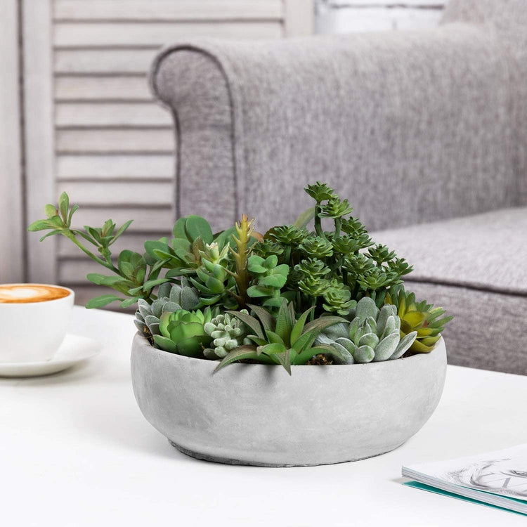 Artificial Assorted Succulent Plants in Round Gray Cement Plant Pot