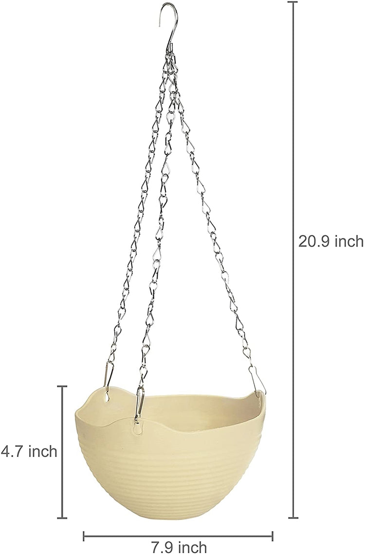 - The set of vibrant and colorful (blue, yellow and white) self-watering plastic planters are held up with metal hanging chains